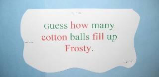 - Frosty's Estimation Station, created by Ms. O'Prandy, challenges first graders at Port Monmouth Road School in Keansburg, NJ, to estimate how many cotton balls fill up Frosty.